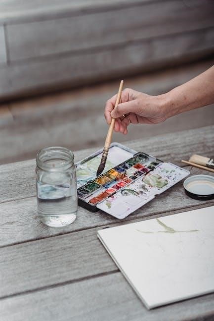Watercolor PDFs often detail essential supplies: paints, brushes, and paper. Beginners benefit from understanding these basics before starting, ensuring a successful learning experience.